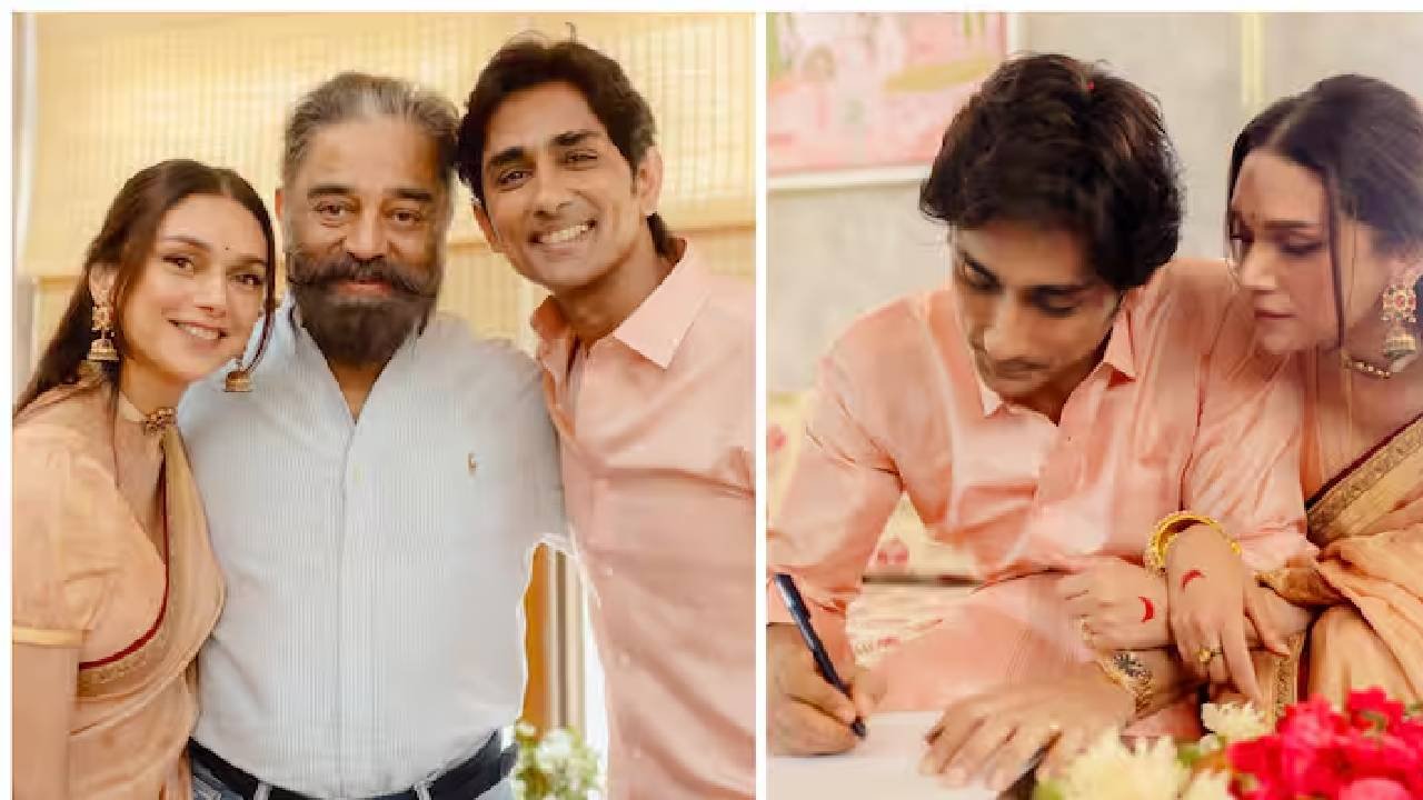 नई दिल्ली: अदिति राव हैदरी और सिद्धार्थ की शादी की तस्वीरों ने फैंस का दिल जीत लिया है। इस खुशहाल जोड़े ने 16 सितंबर को तेलंगाना के एक मंदिर में अपने प्रियजनों की उपस्थिति में विवाह vows का आदान-प्रदान किया। उनकी शादी का जश्न अभी खत्म नहीं हुआ है; उन्होंने हाल ही में अपनी शादी का पंजीकरण कराया और कई मशहूर हस्तियों, जैसे मणि रत्नम और कमल हासन, को अपने आशीर्वाद देने के लिए आमंत्रित किया।
