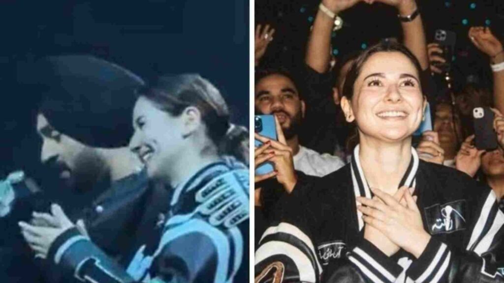 दिलजीत दुसांझ अपने ‘दिल-लुमिनाती’ टूर के चलते दुनिया के अलग-अलग हिस्सों की यात्रा कर रहे हैं। इसी क्रम में दिलजीत दोसांझ का एक शो लंदन में किया गया, जिसमें पाकिस्तानी एक्ट्रेस हनिया आमिर और रैपर-सिंगर बादशाह भी शामिल हुए. इस शो का वीडियो सोशल मीडिया पर वायरल हो रहा है जिसमें दिलजीत दोसांझ हनिया को स्टेज पर बुलाते हैं, हनिया मुस्कुराते हुए हाथ जोड़ती हैं और सिर हिलाती हैं लेकिन दिलजीत के कहने पर वह स्टेज पर चली जाती हैं।